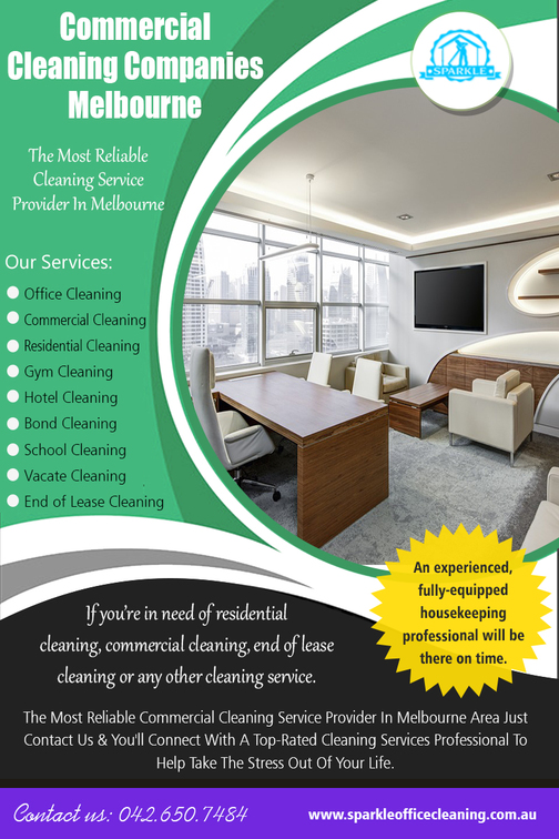 The Benefits of Hiring Commercial Cleaning Companies Melbourne AT www.sparkleofficecleaning.com.au/commercial-cleaning-companies-melbourne/ Find us Google Map : https://goo.gl/maps/ES43wYpJSQQPsrzx5 If you want to impress visitors and customers, having a well-maintained office area is essential. Office space that is clean and tidy helps establish a positive image of the company. Imagine walking into an office that is filthy, disorganized and cluttered. The first impression is crucial to creating that image of quality and professionalism. That is why it is essential to employ a professional service to maintain the aesthetic qualities of your company. Commercial Cleaning Companies Melbourne to fill the needs of your company are easy to find. ADDRESS P: 2/15 Livingstone street Reservoir, Melbourne VIC 3073, Australia PH. : +61 426 507 484 Mon-Sun : 8am-7pm Email: melbournesparkle@gmail.com Social : https://uniquethis.com/profile/officecleaningmb https://sparkleoffice.netboard.me/ https://www.pinterest.com/Bond_Cleaning/