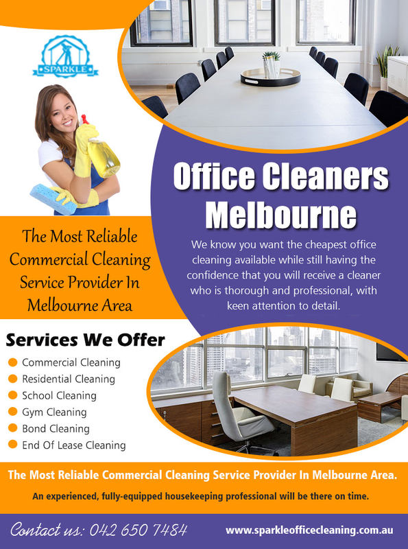 Reasons to Hire Professional Office Cleaners Melbourne At http://www.sparkleofficecleaning.com.au Find Us: https://goo.gl/maps/Vpczw1fjcjR2 Deals in ..... Cleaning Services Dandenong Commercial Cleaners Melbourne Commercial Cleaning Melbourne Office Cleaners Melbourne Office Cleaning Melbourne This increase in the visibility and availability of office cleaning staff tends to raise the overall awareness of the process, highlighting its importance and demonstrating the commitment to high standards. As a result, building occupants tend to show more respect towards Office Cleaners Melbourne when they see them working hard to keep the building clean, staff and visitors often take so greater care as a result. Social--- https://www.youtube.com/channel/UCD2MW6Bx1FeGvy7GX9U8BkQ http://vacatecleaningservicesmelbourne.brandyourself.com/ https://www.pinterest.com/Bond_Cleaning/ https://www.instagram.com/hotelcleaning