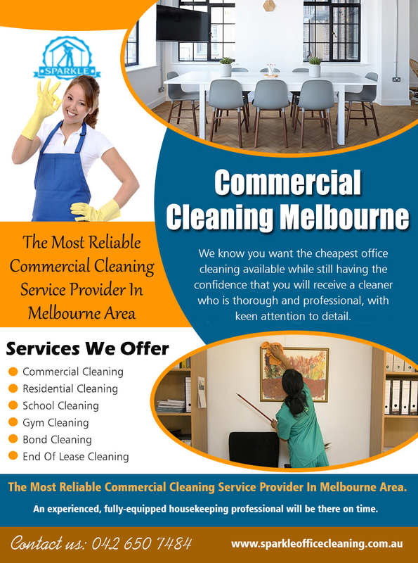 Locate Commercial Cleaning Melbourne for Your Business At http://www.sparkleofficecleaning.com.au/commercial-cleaning-companies-melbourne/ Find Us: https://goo.gl/maps/Vpczw1fjcjR2 Deals in ..... Cleaning Services Dandenong Commercial Cleaners Melbourne Commercial Cleaning Melbourne Office Cleaners Melbourne Office Cleaning Melbourne One of the main benefits of hiring a professional Commercial Cleaning Melbourne is the fact that you can customize your cleaning needs. Some offices are much busier than others and may need garbage and recycling removal on a daily basis, while small business owners may prefer this service less frequently. Professional cleaners are trained to clean. They have the skills required to ensure all aspects of your office, from the bathroom to the boardroom are kept in excellent condition. They'll know how to address more difficult cleaning tasks professionally and effectively. Social--- https://www.facebook.com/Commercial-Cleaning-Melbourne-1527963877420356/ https://kinja.com/sparkleofficecleaning http://sparkleofficecleaning.strikingly.com/ https://remote.com/sparkleofficecleaningcleaning